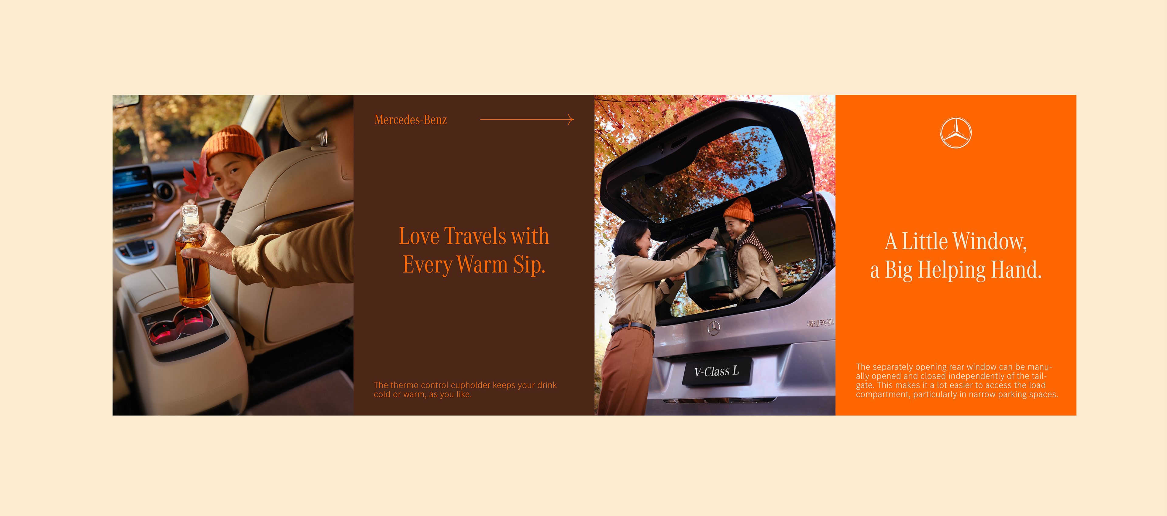The online campaign captures the warmth and beauty of autumn, showcasing the vehicle on scenic day trips that emphasize comfort, space, and togetherness. With this shift in narrative, the V-Class is reimagined as not just a professional vehicle but a premium choice for everyday family adventures.